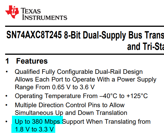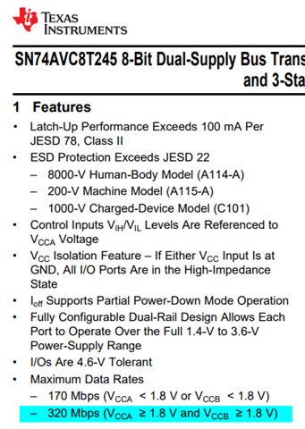 SN74AVC8T245 無明確的頻寬規格 , 是否有相關資料可以參考