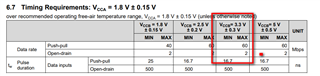 不好意思請問一下,我正在使用這顆晶片在測試1.8v提升到3.3v訊號的資料傳輸,我看到datasheet這顆晶片在push-pull模式時傳輸速度最高可以到110Mbps,而在open drain模式時可以到1.2Mbps,但是我在測試spi傳輸時,時脈設定為 12.5MHz , 但是最後從示波器看出來的波型只有0.8V,而他應該要是3.3V的,想請問是發生了甚麼問題?是因為我沒有在 push-pull 模式嗎?還是 push-pull 模式電路應該怎麼設計?