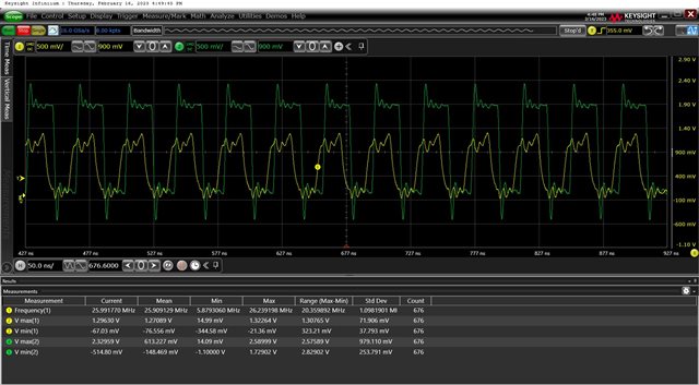 1、输入通道CH B、输入信号频率500kHz、电压1.2V,输出通道CH A、电压1.8V;