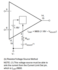 电流限制的作用是、用作以 V-为基准的固定电压、该电压能够测量从电流限制设置引脚流出的电流。