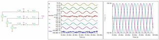 在不平衡的三相系统中、 相电压的幅度不相等。 因此、相电压的矢量和将会 不会 从而导致非零的中性点电压和电流。 这是您在示波器屏幕截图中观察到的情况。