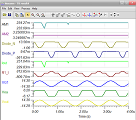 以下仿真展示了使用输出轨上的肖特基二极管实现的电流控制。