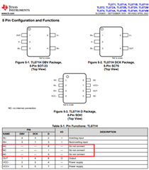 TL071x 的数据表赢得了重大变更。 但是、TL07x 系列中的所有偏移调整引脚都将被移除或标记为 请勿连接。 下面将显示 TL071H 器件的引脚标识示例、 目前数据表中未明确列出移除的特性。