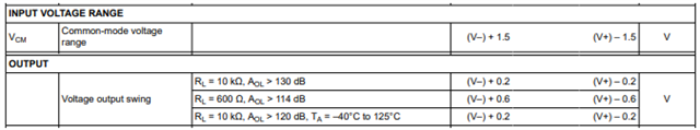 [报价 userid=“35727" url="“ url="~“~/support/amplifiers-group/amplifiers/f/amplifiers-forum/1560727/opa2210-opa2210-supply-voltage ]我们的客户想确认 OPA2210 电源电压是否支持+20V ~ 5V 输入范围、电源电压需要支持 +24V~- 12V[/报价]Vs = 24 -(–12)= 36Vdc、且它在建议的工作电源电压范围内运行、请参阅下表。