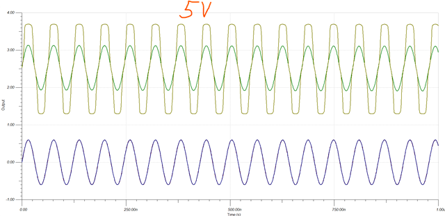 当将 V+更改为 5V 时、它开始放大信号、但仍会出现削波。