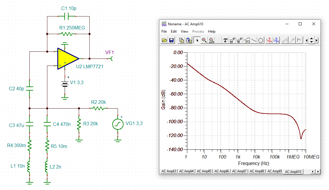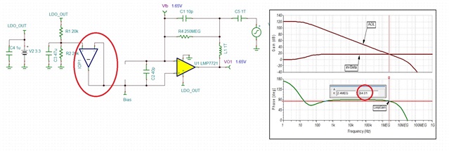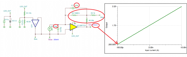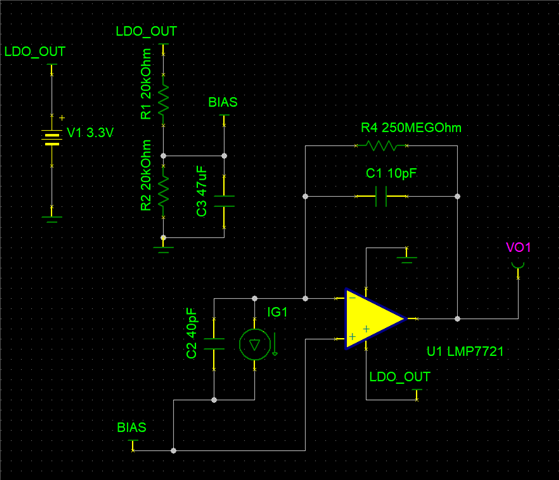 我正在使用 LMP7721设计一个跨阻抗放大器。