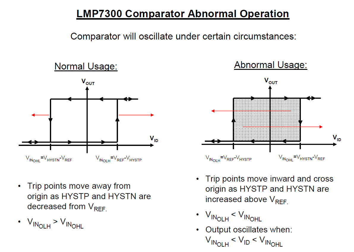 在数据表中,我们看到了与Vref连接的Inn和与电压低于Vref连接的HYSTP和HYSTN,以设置VIH和VIL。 如果HYSTP或HYSTN与高于Inn的电压相连,会发生什么情况?