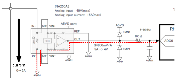 当INA250A3未通电时,客户希望将0V输入到AD转换器。 此时AD转换器通电。