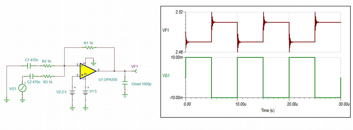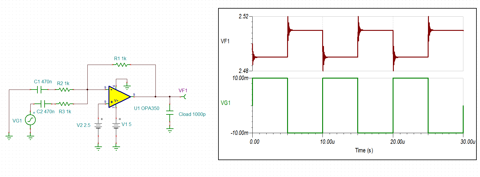 电路原理图粘贴在下面。 OPA350由+5V单电源供电。 ALA_MID为2.5V。