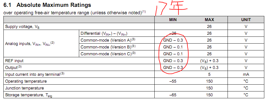 我注意到INA214 Y16数据表和Y17数据表。 通用模式的VIN+/VIN-的最大值不同。 是什么让这种情况与众不同? 流程是否发生变化或其他任何情况? 谢谢!