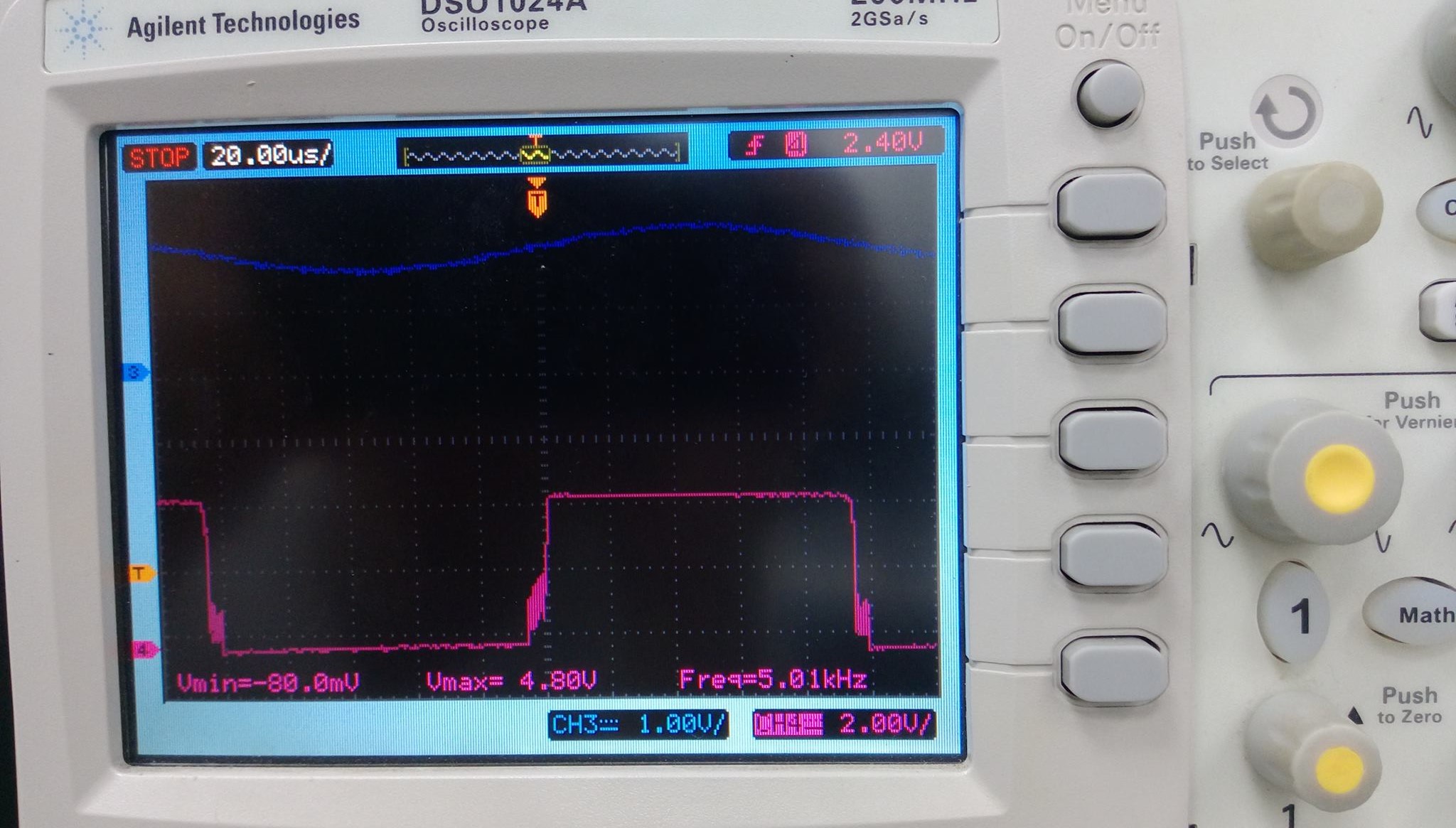 我使用5V (GND)电源电压,反向输入恒定2V和非反向输入5kHz正弦波(1.5V~2.5V)测试了TL714。