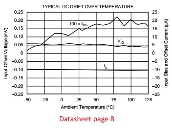 您使用IB温度漂移(35nA/C)和室温IOS (0.32uA)来计算过热的最大IO。 IOS的温度漂移是不同的(3.5nA/C而不是35nA/C),我对IOS不感兴趣。