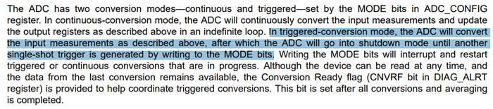 为此、我希望在单次模式下启动转换、并使用 ALERT 引脚作为完成转换的指示器。