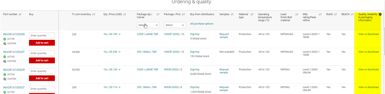 每个器件都可能具有多种资格、因为它们可能需要满足不同的需求。 对于每个器件、您可以从底部的产品特定页面上的质量信息中验证已执行的测试是什么、链接是。