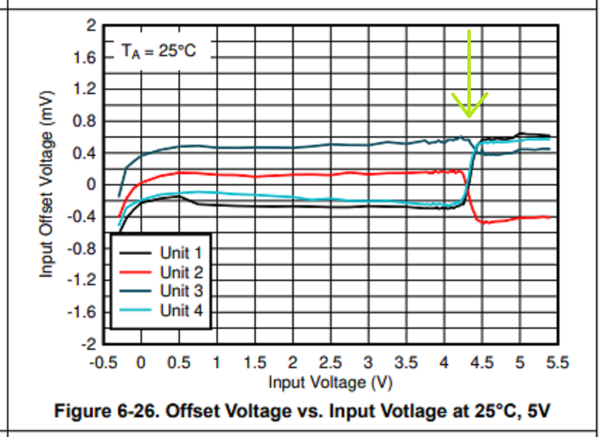 Kai 重点介绍了输入级中的转换点、这一点始终很重要、因为这会影响开关阈值的精度。 然而、为了回答 Zeming 的特定问题、当开关阈值被设定在5V 至5.2V 范围内时、器件不会饱和、假定一个5V 的电源电压。 只需澄清一下、输入共模电压是实际开关阈值、而不是两个输入的平均值。 这与放大器定义 VCM 的方式不同、因为放大器旨在具有负反馈、因此在输入端具有虚拟短路。