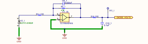 我们有一个读数板、用于使用 TLV9064运算放大器将电流转换为电压。 我需要测量来自光电二极管的电流。 根据数据表、只要没有光照条件、它将产生100uA 的电流、但我无法测量等效电压。 到目前为止、我们没有 UV-A 光源、因此无法验证电路。 如果此电路需要任何更新、请告知我。