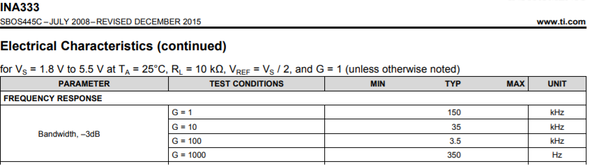 INA333具有-3dB BW、如下图所示。 它是 Instr 增益的函数。 放大器。