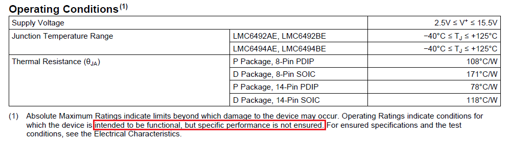 但是、TI 是否至少保证 LMC6492能够降至 Vs=3V? 请参阅许多图(7、10、11、15、18、 19、23、25、29、36)、显示了 LMC6492在 Vs=3V 时的性能。
