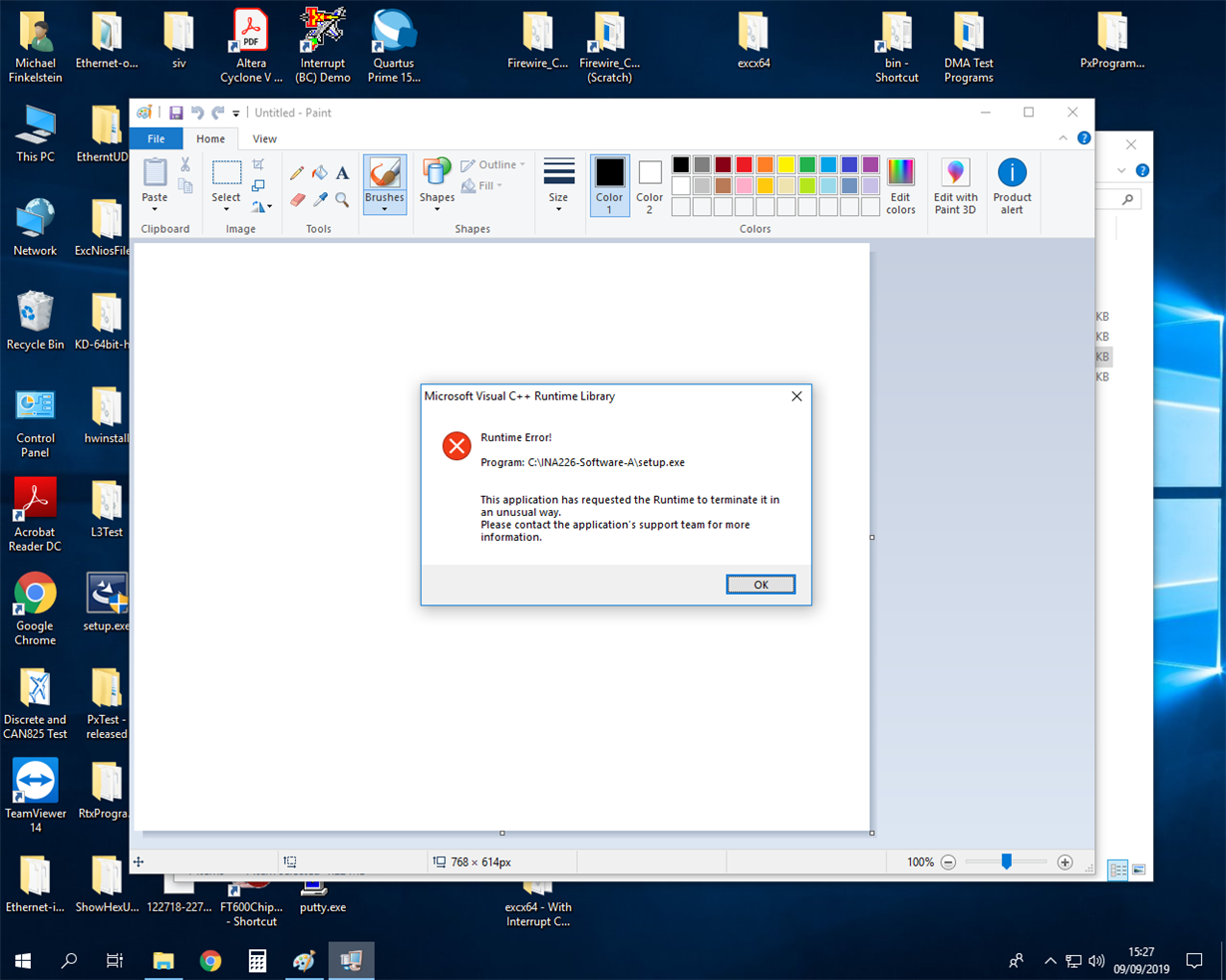我收到完全相同的运行时错误消息。 我还尝试以管理员身份运行、但仍收到相同的错误消息。 我在 Windows 10 Pro 64位(版本1903)上运行。