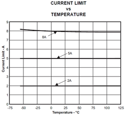 电流限制与温度间的关系图和 电流限制与电源电压间的关系图是 典型特性。 对容差不作任何保证或不能作出任何保证。 我们不会提供超出数据表所提供特性的 ILIM 特性信息。