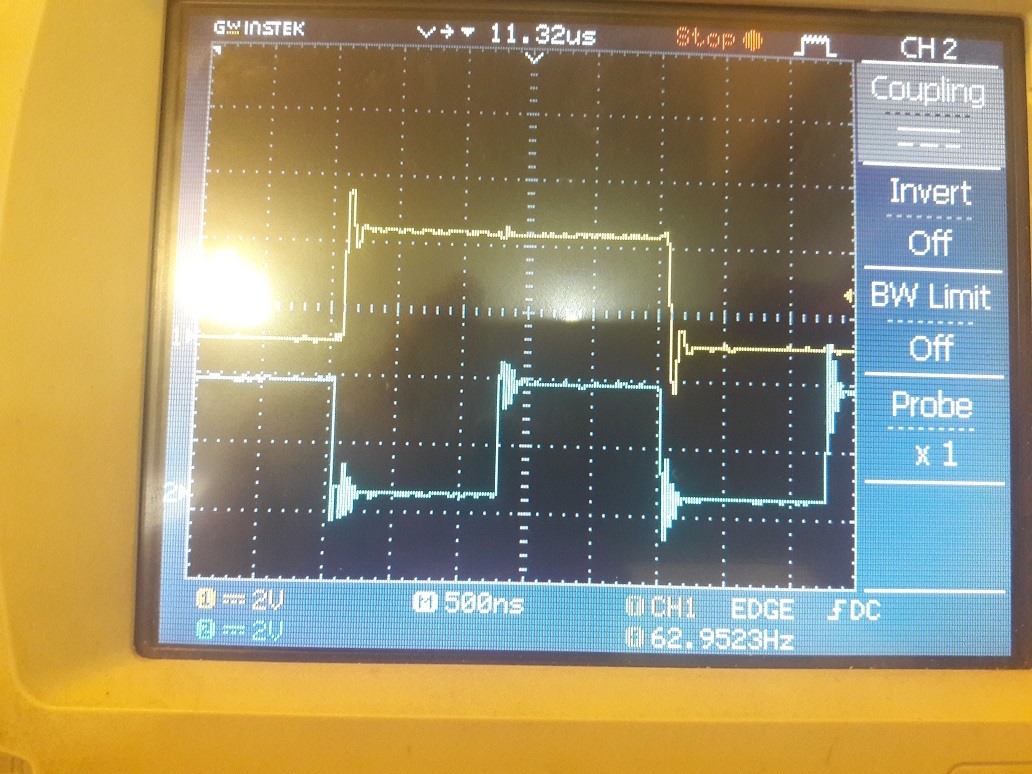 我使用 PGA113放大信号。 我发送0x2A11、根据数据表、它应该是增益为2的 CH1信号。 我已将 AVdd 连接到5V、将 DVdd 连接到3.3V。 这些是 CS、SCK、SDI 引脚: