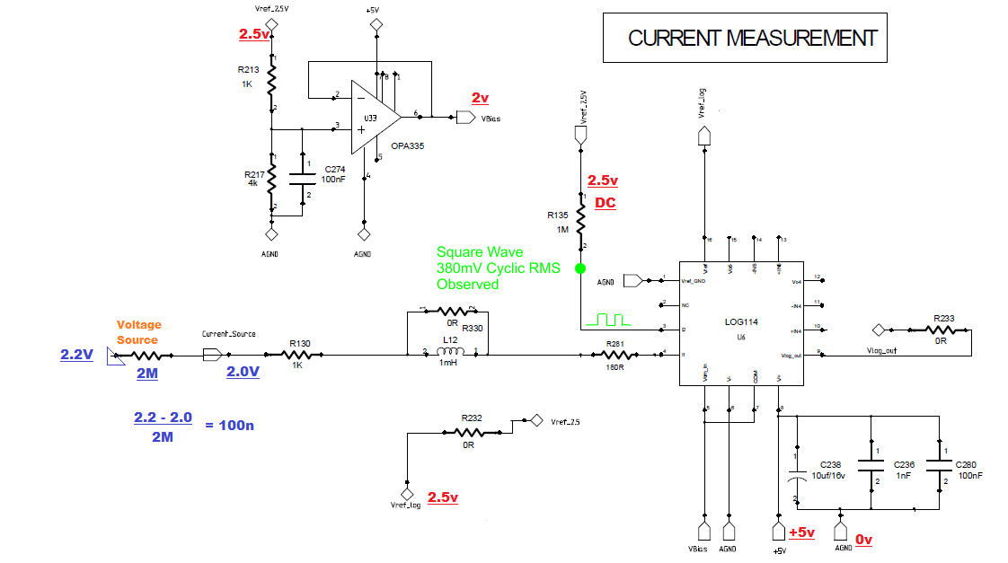 因此、我们无法测量小于500nA 的电流、方波是应该位于 I2上、还是应该是直流电平(VCM 电平)?