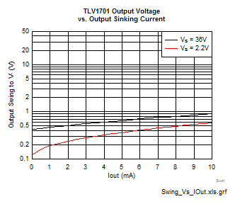 如您所见、最小 VOL 摆幅因电源电压而异。 在2.2V 时、电流为1mA 时的 VOL 为200mV。 电流限制开始出现在12mA 以上、因此任何负载电流都应保持在曲线的线性部分(<10mA)。 越低、摆幅越好。