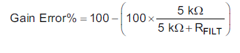 感谢您在论坛上发帖。 下面是用于增益的电阻器的图。 为了理解该公式、我们可以首先查看5k/(5K+Rfilt)项。 这是一个小数、与增益中的 rfilt 与增益中没有 rfilt 的相似性相对应。 如果 Rfilt = 0、则为5k/5k =1。 比率1对应100%、增益与原始条件完全相同。 如果 Rfilt 调整为100、则为5k/5.1k=0.980392。 因此、此结果与原始未更改值类似、为98.0392%。 为了找出差异(我们的增益误差)、我们采用1-0.980392=0.019608。 我们再次将其转换为百分比乘以100。 因此,我们总共有100%*(1-5k/(5k+Rfilt)=100-(100*5k/(5k+Rfilt))。 由于此公式使用的是5k、不随每个增益变量的变化而变化、因此此公式对所有增益选项都有效。