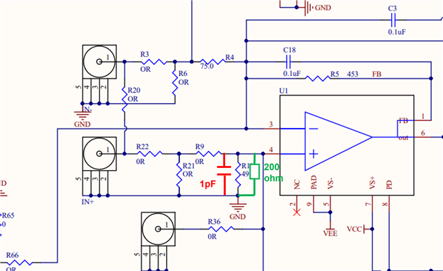 当我们尝试开发自己的 EVM 来评估 ToF 激光雷达应用中 OPA855的性能时、我们发现、位于 R11的电容器是 IN+引脚上的输入电容器、很容易影响失调电压的测量结果。