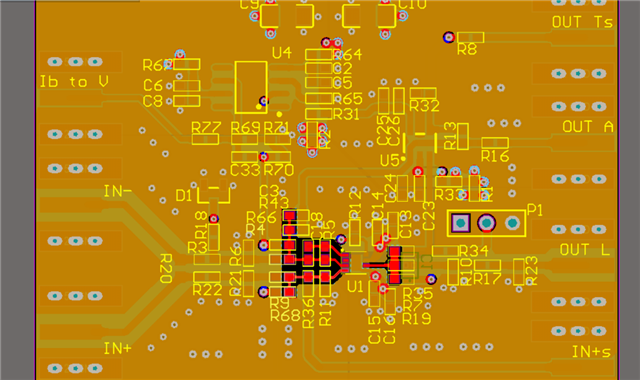 1. 您能就原理图和下面显示的 PCB 布局给我们一些建议吗我只是在下图中列出了 PCB 层的一部分(顶部、底部、VCC-VEE、GND)、如果您需要更多信息、请告诉我。顺便说一下、我们的 PCB 是一个4层 PCB。