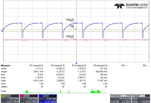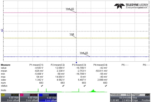 如果这是热问题,JP1已被移除,而只有 U2由+- 20V 供电,且输出设置为-10V (@3.2A)-->无热关断。