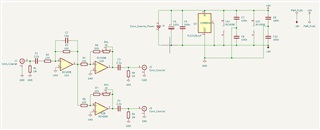 我正在尝试使用 TLE2426 IC 实现一个简单的2 x 音频分离器、以便从单个电源获得一个双电源。