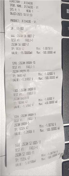 NO1.AB418:万用表电源测试结合飞针测试报告显示 E1-001站点4的 U005的输出电压异常、万用表测试正常