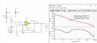 (1)我们的电路拓扑是否不稳定? 您是否可以找出有问题的任何东西? 为完整描绘、OPA349的引脚1 (正端子)由分压器供电、分压器由两个10k 电阻器和一个0.1uF 电容器组成、从分压器的中点到接地端。 1.35V 输入到分压器中、产生0.675V 的运算放大器输入。