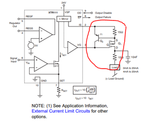 我不认为精度问题与 FET 有关、除非 FET 以某种方式被强制进入三极管模式、或者电路不在正常线性状态下运行。 您是否有关于有问题条件下的电压的更多数据? 理想情况下、如果我们能够获得 FET 上的所有电压(栅极、漏极、源极)、XTR111引脚2上的电压 以及电源和输出电压、这将有助于解决问题。