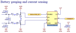 请注意一个复杂因素:我展示的电路原理图用于在低侧进行电流检测、在这种情况下、我们可以很容易地使用传统运算放大器而不是 INA190。 但一个较新的设计取代了 BQ27427YZFR 电池电量监测计、这迫使我们进行高侧电流检测。 在此新设计中、INA190操作其输入而远高于其 Vcc 的能力是 真的很好,真的很有帮助 传统运算放大器无法提供的特性、因此我们还是愿意选择 INA190。