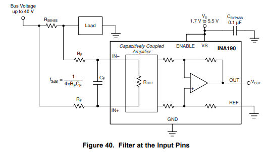 这是否意味着我们应在输入端进行一些 RC 滤波、以便为 INA190呈现的信号远比这些非常窄的低频脉冲更为类似于直流信号? (即、如数据表中的图40所示?) 或者我们是否应该考虑其他替代方案?
