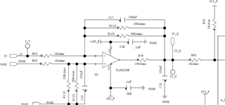 在上电或断电期间、发现 IV_O 具有输出。 粉色线 CH4为 IV_O;绿线为 CH2、它是运算放大器的正电源。 我发现运算放大器断电的电压大约为3.5V、因此输出将出现不可控制的尖峰。 请通过优化电路帮助确认产生尖峰电压的原因以及是否可以消除尖峰电压。