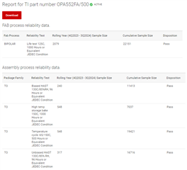 [报价 userid="628816" url="~/support/amplifiers-group/amplifiers/f/amplifiers-forum/1430836/opa552-what-is-the-life-cycle-of-this-component-under-7-24-100c-operating-junction-temperature-and-125c-operating-junction-temperature "]组件 OPA552FAKTWT 在7/24、@100C/125C 工作结温下的生命周期可以粗略估算出几年来的情况。 [报价]OPA552的 DDPAK TO-263封装具有如下所示的可靠性测试。 寿命测试125°C 约为1000小时。 请参阅以下链接。