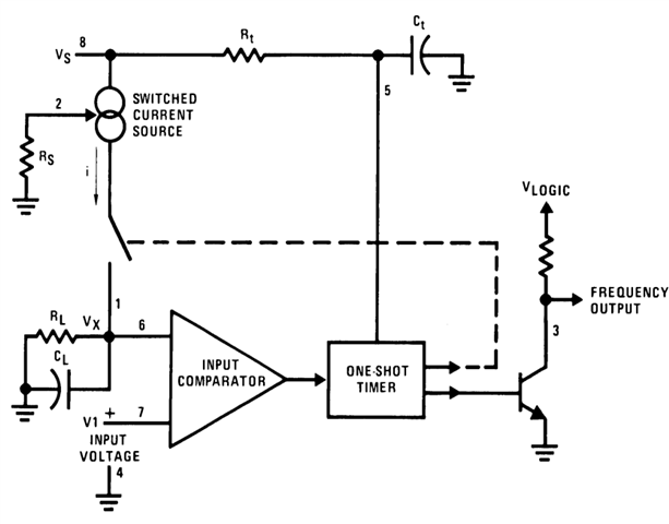 您好! 我目前正在一个团队一起做项目、使用 LM331生成随电压变化的频率输出。 在 LM331的数据表中、电压与频率成正比的原因如下所述: