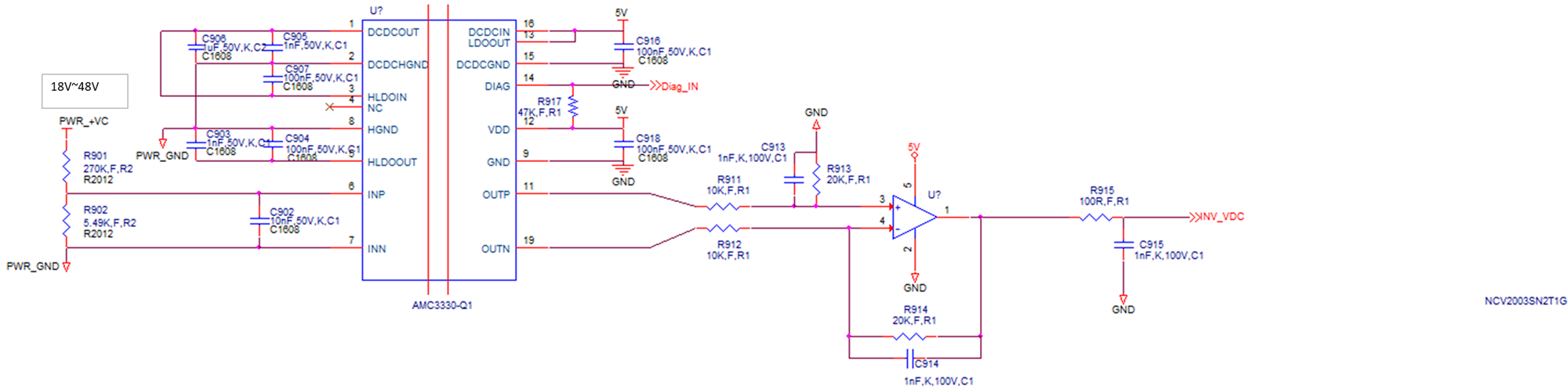 似乎客户对产品有很好的了解。 AMC3330-Q1可用于准确检测18-28V。 本产品包含一个集成的直流/直流转换器、因此只有低侧/初级侧需要电源。