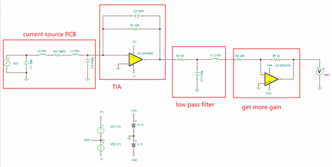 我正在尝试构建电流测量电路(TIA)、以通过1M 欧姆电阻器测量 IV 曲线。  请帮助查看此处的设计并提出一些问题。   以下是一些详细信息。
