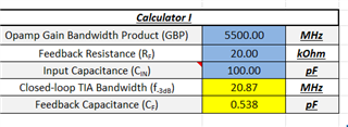 总增益= 200k、在测量1uA 脉冲电流时、我希望输出电压为200mV 且噪声最低。