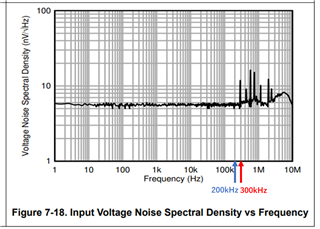 我认为 OPA182的基本斩波频率为200kHz、但从图7-18来看、第一个音调是300kHz。