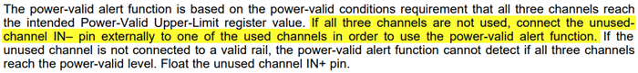 • 当不使用信道时、如果您未将电源有效警报连接到某些设备、则电源有效警报将无法正常工作。 这是数据表中的内容: