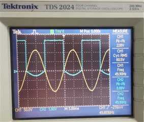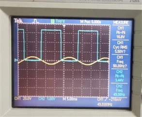 现在我得到了结果、唯一的问题是随着电压的增加、输出方波变为低于示波器图像中所附的0V 电平。