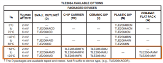 我能不能知道 上述产品型号的工艺技术/晶圆技术(TLE2064AMD)对于我们 关键的航空应用,我们的客户需要提供这些数据。 谢谢你