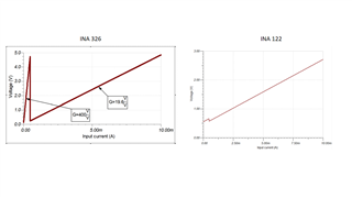但由于 INA326不可用性、我正在考虑使用 INA122作为替代方案、如参考设计文档修改部分第12页中所述。 很遗憾、我无法获得与针对 INA326获得的结果类似的结果。 请告诉我、为了获得相似的直流特性、我应该对设计进行哪些更改。 此外、我还想知道是否还有其他任何电路可用于我的应用。