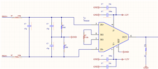 PCB 布局"特写"、电源+-12V。  电源电压略有不同、例如+12.1和-11.9
