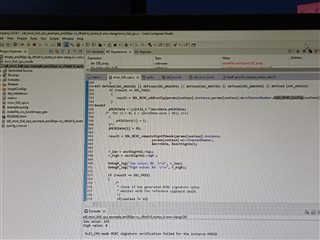 我将 CRC 类型更新为  SAE J1850 、更改了  数据位大小  中导出  64 位至 8 位 、设置 params.dataBitSize  1. 、并更改了  gMCRC 数据缓冲区大小  中导出  400 简化为 1 、指定值  35  直接如下图所示。 我用了一个  调试日志打印语句  以读取  SectSign 寄存器值 、如下所示。